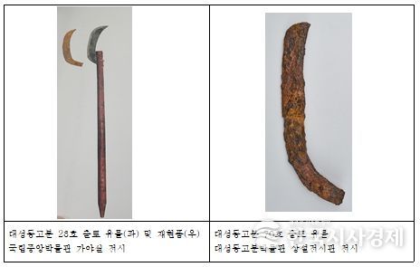 대성동고분박물관을 찾으면 애니메이션 속 무기의 모티브가 된 대성동고분군 70호 출토 곡도를 볼 수 있다.