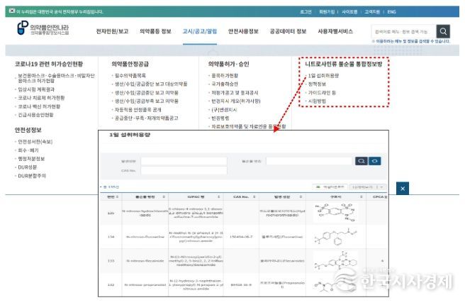 한국시사경제 윤경수 기자 | 식품의약품안전처는 니트로사민류 불순물 관련 정보에 대한 제약업계의 접근성을 높여 철저한 의약품 안전관리를 할 수 있도록 8월 28일부터 의약품안전나라에서 니트로사민류 불순물 관련 정보를 통합 제공한다고 밝혔다.