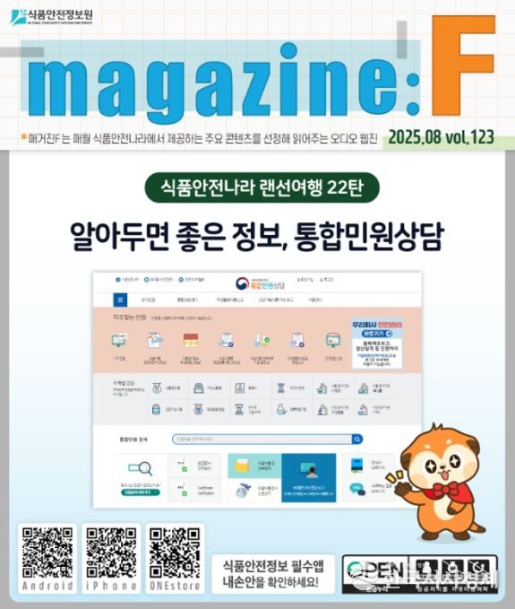 한국시사경제 윤경수 기자 | 식품의약품안전처와 식품안전정보원은 식품 안전 정보에 대한 접근성을 개선하고 정보 취약계층의 디지털 정보화 수준 향상을 위해 식품안전나라 누리집의 ‘매거진 F’ 서비스를 개편했다고 밝혔다.
