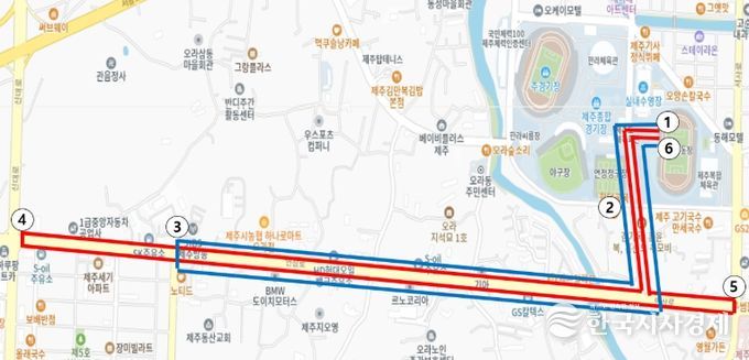 행사 구간인 애향운동장~한라명동칼국수~보건소 사거리 서측~마리나 사거리 동측 도로는 오전 9시부터 낮 12시 30분까지 양방향 전면 통제된다. 응급상황 통행을 위한 비상차선은 확보할 예정이다.