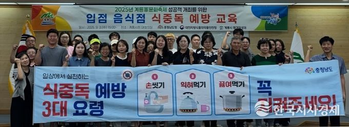 한국시사경제 윤경수 기자 | 계룡시는 오는 17일부터 21일까지 개최되는 2025계룡軍문화축제와 지상군페스티벌에서 방문객들에게 안전한 먹거리를 제공하기 위해 3일 시청 대회의실에서 식중독 사전 예방 교육을 실시했다고 밝혔다.