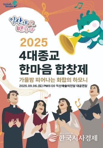익산시 관계자는 "우리 시의 자랑인 4대 종교가 교류와 화합을 이어가는 이번 행사가 종교를 넘어 지역사회의 조화와 평화를 상징하는 무대가 되길 바란다"며 "합창제를 계기로 상시적인 교류와 화합을 나눌 수 있는 자리가 많아지길 바란다"고 밝혔다.