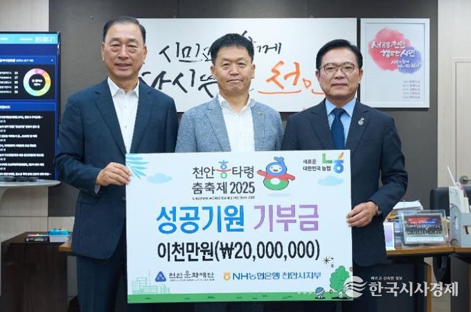 한국시사경제 충남취재본부 | 천안문화재단은 9일 NH농협은행 천안시지부가 천안흥타령춤축제 2025의 성공적인 개최를 위해 기부금 2,000만 원을 기탁했다고 밝혔다.