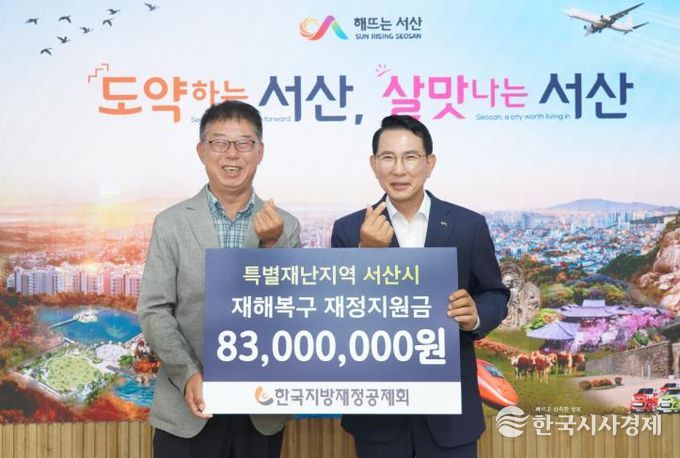 한국시사경제 충남취재본부 | 충남 서산시는 9일 한국지방재정공제회로부터 특별재난지역 재해복구 재정 지원금 8천3백만 원을 전달받았다고 밝혔다.