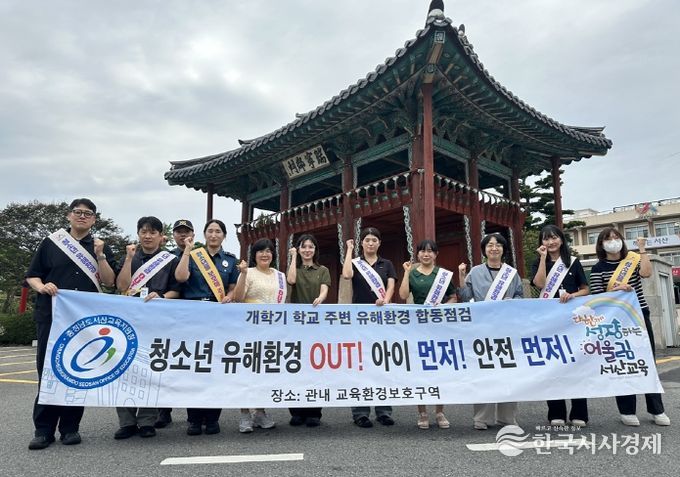 한국시사경제 충남취재본부 | 서산교육지원청은 지난 8일 관내 교육환경보호구역을 대상으로 2025년 개학기 학교주변 유해환경 합동점검을 실시했다.