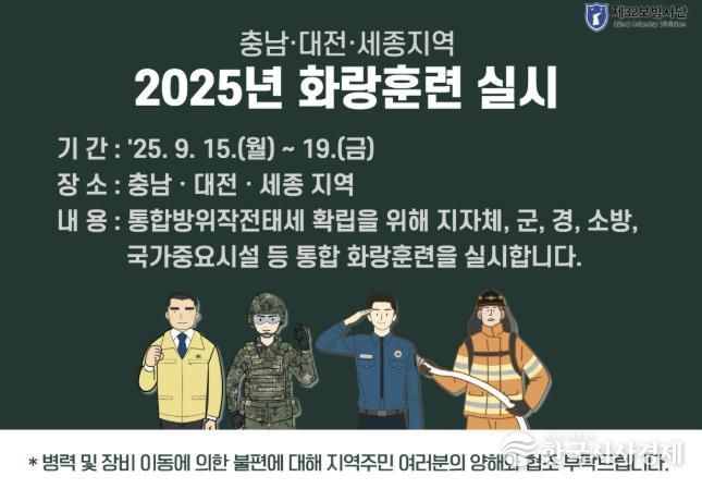한국시사경제 충남취재본부 | 아산시는 오는 9월 15일부터 19일까지 ‘2025 화랑훈련’을 실시한다고 밝혔다.