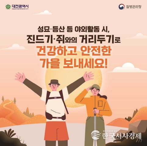 한국시사경제 노승선 기자 | 대전시는 성묘와 등산, 농작업 등 야외활동이 늘어나는 가을철을 맞아 시민들에게 진드기·설치류 매개 감염병 예방수칙 준수를 당부했다.