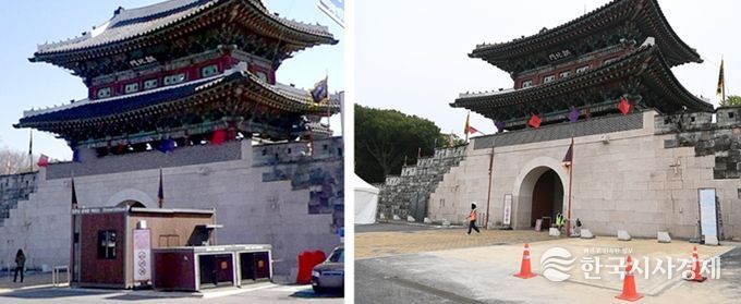 한국시사경제 윤광희 기자 | 진주시는 1일 진주성 공북문 앞을 가로막아 시각적으로 조화롭지 못했던 매표소를 기존 관광안내소 옆으로 이전 설치하여 진주성 성벽과 공북문 경관을 회복했다고 밝혔다.