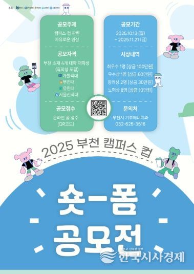 공모 대상은 ‘캠퍼스 컵’ 사업이 진행 중인 가톨릭대, 부천대, 유한대, 서울신학대 등 부천 소재 4개 대학 재학생과 휴학생이다. 참가자는 ‘캠퍼스 컵’을 주제로 1분 30초 이내의 숏폼 영상을 자유롭게 제작해 제출하면 된다.