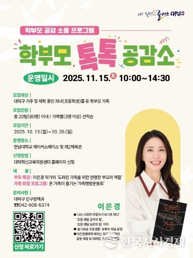 한국시사경제 대전취재본부 | 대전 대덕구는 오는 11월 15일 한남대학교 메이커스페이스 및 제2체육관에서 학부모와 자녀가 함께 참여하는 공감 소통 프로그램 ‘학부모 톡톡 공감소’를 운영한다고 밝혔다.