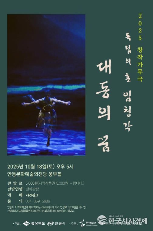 한국시사경제 경북취재본부 | 한예술단이 주최․주관하는 '2025 창작가무극 독립의 혼 임청각 ‘대동의 꿈’' 공연이 10월 18일 오후 5시, 안동문화예술의전당 웅부홀에서 개최된다.