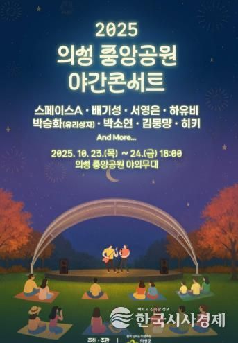 한국시사경제 이정이 기자 | 의성군은 지난 7월 1일 개원한 도심 속 힐링공간 ‘의성 중앙공원’에서 오는 23일부터 24일까지 양일간 오후 6시에 ‘2025 의성 중앙공원 야간콘서트’를 개최한다고 밝혔다.