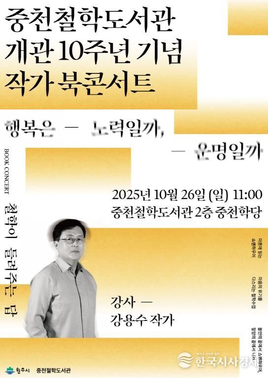 한국시사경제 이정이 기자 | 원주시 중천철학도서관은 오는 26일 오전 11시, 개관 10주년 기념 작가 북콘서트를 개최한다.