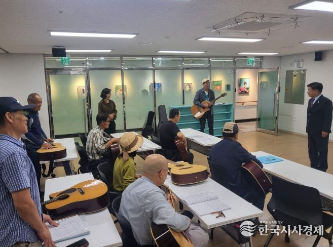 한국시사경제 윤광희 기자 | 고성군이 운영하는 고성군종합사회복지관 분관에서는 10월 17일 저녁, 야간노래교실과 통기타반 수강생들을 격려하기 위해 이상근 군수가 직접 현장을 방문했다.