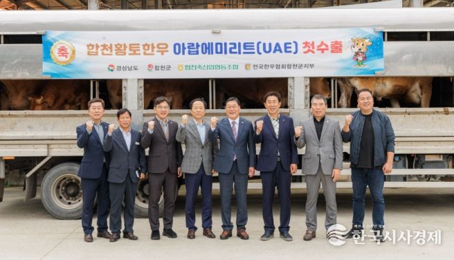 한국시사경제 김태훈 기자 | 합천군은 10월 22일, 합천 한우경매시장에서 합천황토한우의 아랍에미리트(UAE) 첫 수출 출하식을 가졌다.