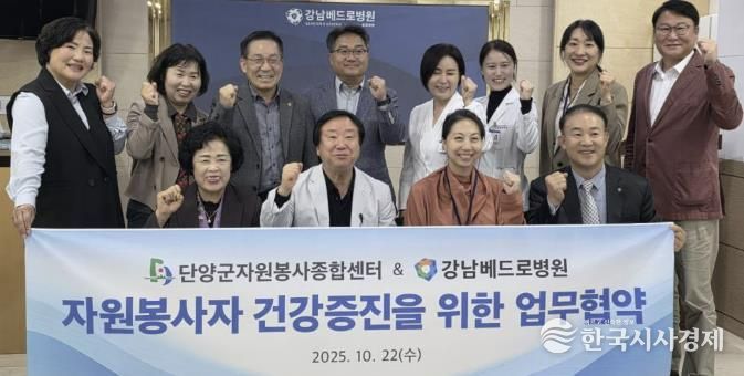 한국시사경제 충북취재본부 | 충북 단양군자원봉사종합센터는 지난 22일 강남베드로병원과 자원봉사자의 건강복지 증진을 위한 업무협약을 체결했다고 밝혔다.