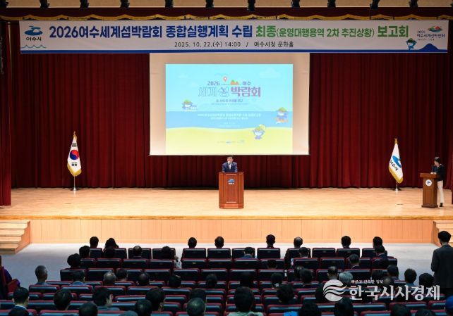 한국시사경제 전남취재본부 | 2026여수세계섬박람회조직위원회가 지난 22일 여수문화홀에서'2026여수세계섬박람회 종합실행계획 수립' 최종보고회를 개최했다.
