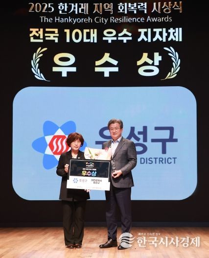 한국시사경제 대전취재본부 | 대전 유성구가 지난 23일 서울 중구 대한상공회의소 국제회의장에서 열린 '2025 한겨레 지역 회복력 평가' 시상식에서 전국 10대 우수 지방자치단체에 선정됐다.