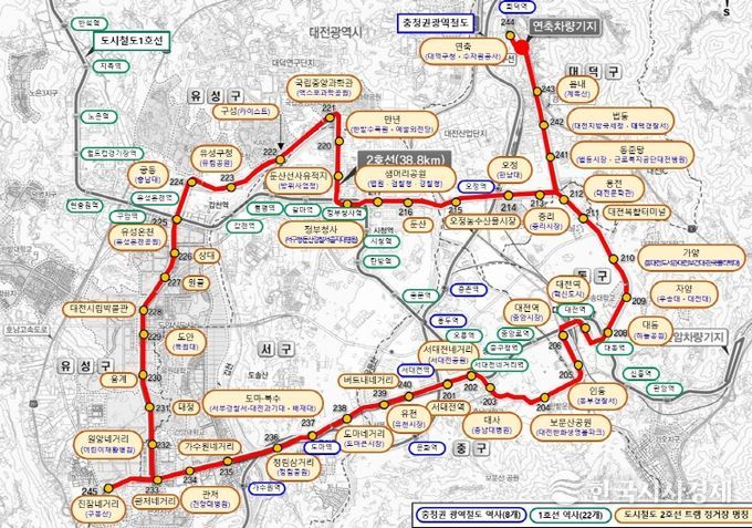 한국시사경제 대전취재본부 | 대전시는 도시철도 2호선 트램 정거장 45개소에 대해 정거장 명칭을 확정 고시했다.