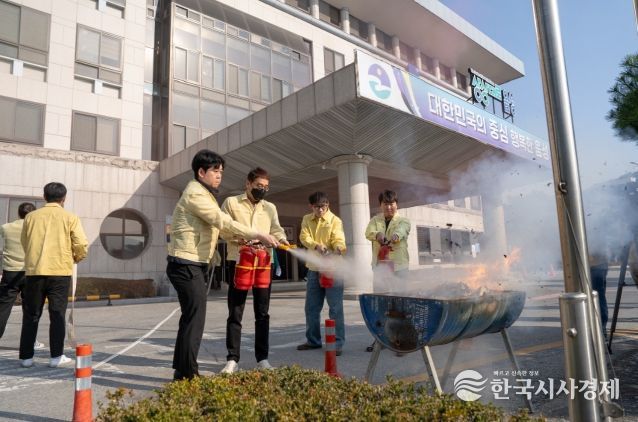 또 청사 건물에서 예기치 않은 화재 발생을 가상으로 설정하고 지휘반, 진압반, 대피유도반, 구조구급반 등 직원 자위소방대의 화재 초기 진압과 화재 발생에 대비한 종합 훈련으로 진행됐다.