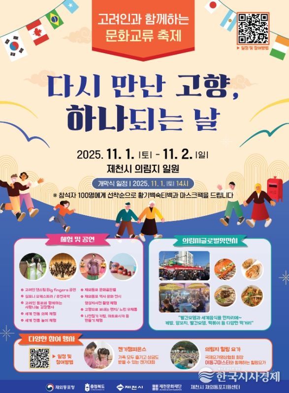 한국시사경제 충북취재본부 | 제천시가 11월 1일부터 2일까지 '다시 만난 고향, 하나되는 날' 재외동포 화합 행사를 개최한다고 밝혔다.