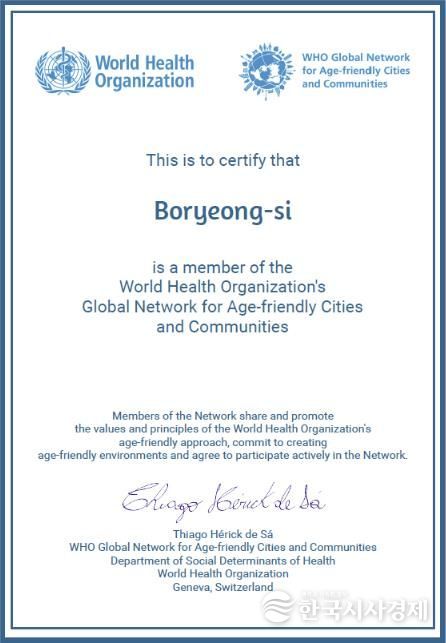 한국시사경제 김태훈 기자 | 보령시는 세계보건기구(WHO)가 운영하는 ‘고령친화도시 국제네트워크(Global Network for Age-friendly Cities and Communities)’에 공식 가입하며 고령친화도시로서 국제적 인정을 받았다고 밝혔다.