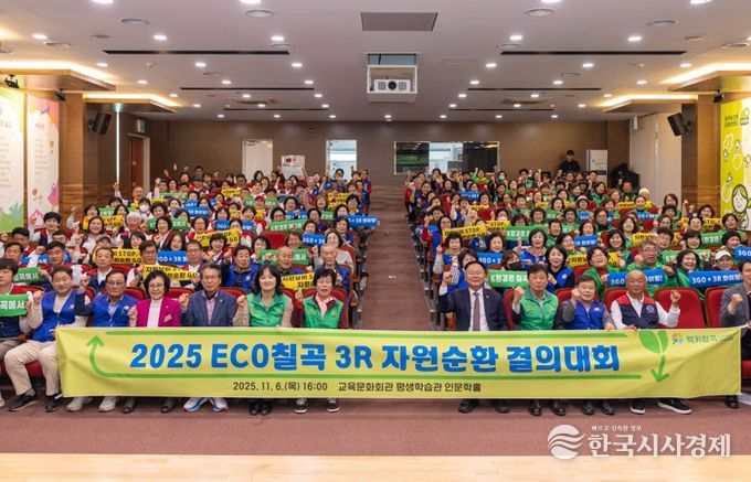 한국시사경제 노승선 기자 | 칠곡군은 지난 11월 6일, 교육문화회관 평생학습관 인문학홀에서 ‘2025 ECO칠곡 3R 자원순환 결의대회’를 개최했다.
