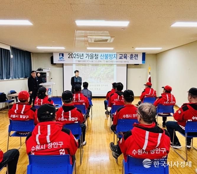 한국시사경제 사회팀 | 수원특례시가 10일 공원녹지사업소 대회의실에서 가을철 산불방지 교육·훈련을 했다.