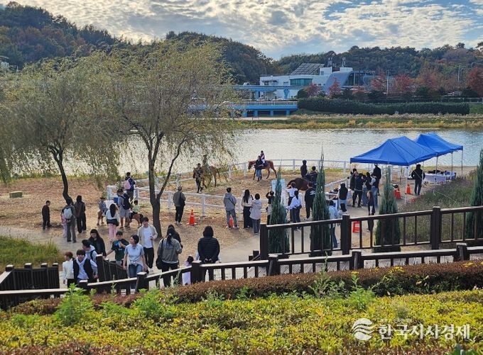 한국시사경제 전남취재본부 | 순천시는 한국마사회와 협업해 지난 11월 1일부터 3주간 매주 주말 순천만국가정원 내 스페이스 브릿지 하부 동천변에서 운영한 도심승마체험이 시민과 관광객 3천여 명이 참여한 가운데 성황리에 마무리됐다고 밝혔다.