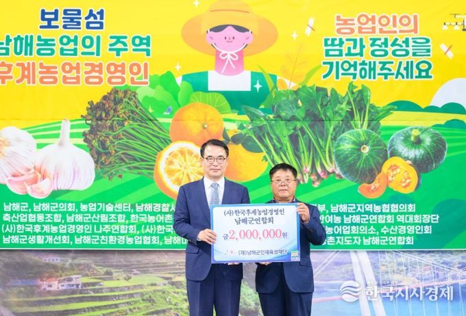 (사)후계농업경영인 남해군연합회는 매년 한마음대회를 개최하며 인재육성기금을 기탁해 오고 있으며, 2013년부터 총 1,200만 원의 인재 육성 기금을 기탁했다.