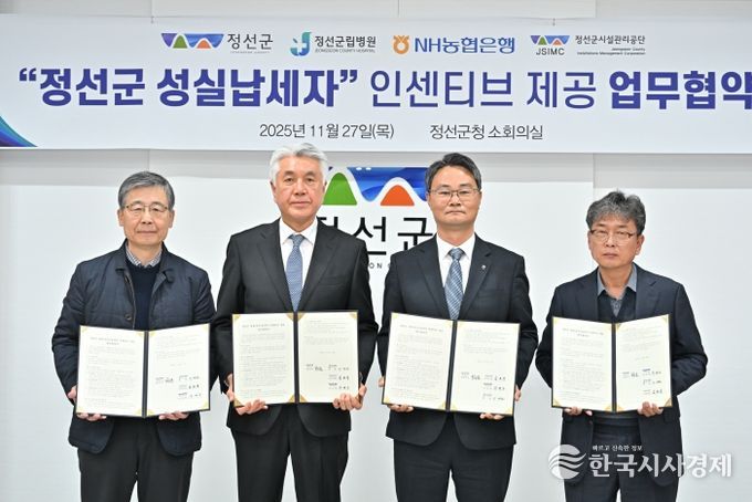한국시사경제 권충언 기자 | 정선군은 11월 27일 군청 소회의실에서 성실한 납세 문화 정착과 군민의 납세 의식 제고를 위해 정선군립병원, NH농협은행 정선군지부, 정선군시설관리공단과‘정선군 성실납세자 지원 업무협약’을 체결했다.
