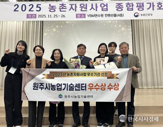 한국시사경제 권충언 기자 | 원주시농업기술센터는 지난 25일 열린 농촌진흥청 주관 ‘2025년 농촌자원사업 성과확산 경진대회’에서 우수상을 수상했다.