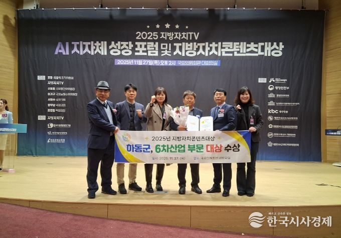 한국시사경제 경남취재본부 | 하동군이 11월 27일 국회의원회관에서 열린 ‘2025 지방자치콘텐츠 대상’에 참가해 6차산업 부문 대상을 수상했다.
