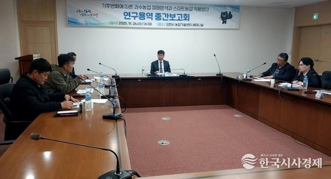 한국시사경제 권충언 기자 | 김천시는 지난 11월 26일, 기후변화에 따른 과수 농업 피해 분석과 스마트농업 적용 방안 연구용역 중간 보고회를 개최했다.