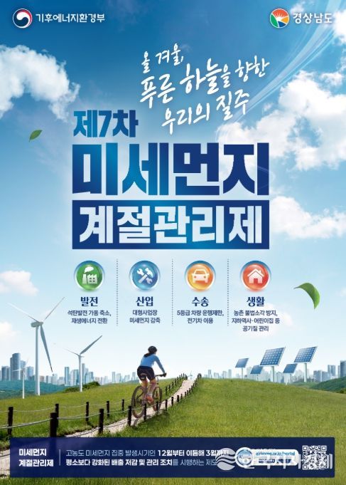 한국시사경제 사회팀 | 경상남도는 올해 12월부터 내년 3월까지 ‘제7차 미세먼지 계절관리제’를 시행하며, 수송·산업·발전·생활 전반에서 미세먼지 배출 저감에 집중 대응 할 계획이라고 밝혔다.