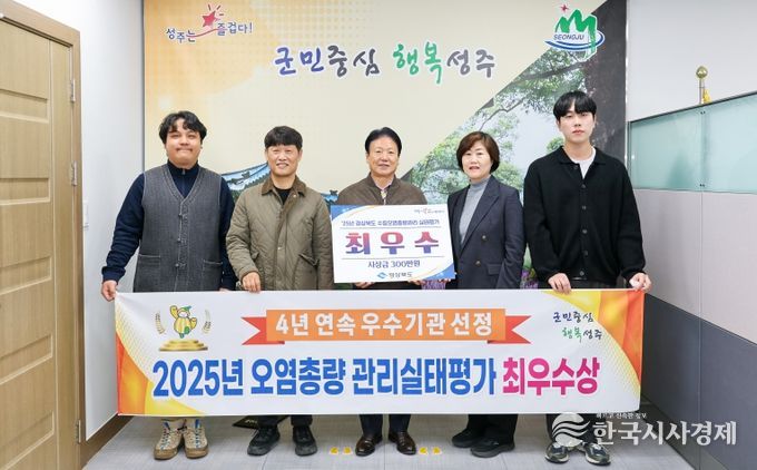 한국시사경제 권충언 기자 | 성주군은 경상북도가 주최한 “2025년도 수질오염총량관리 실태평가”에서 최우수상을 수상했다. 이로써 2022년ㆍ2023년ㆍ2024년에 이어 4년 연속 우수기관으로 선정되는 쾌거를 이루었다. 이번 수상은 성주군의 지속적인 환경 관리 노력과 열정을 인정받은 결과로 그 의미가 크다 하겠다.