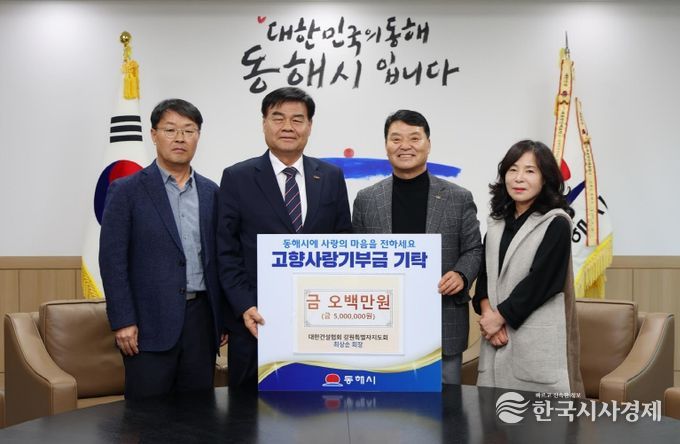 최상순 회장은 “고향사랑기부제를 통해 동해시 발전에 마음을 보탤 수 있어 뜻깊게 생각한다”며, “기탁금이 지역 성장과 시민 복리 증진에 도움이 되기를 바란다”고 말했다.