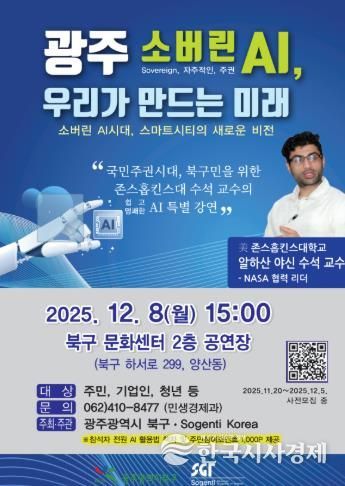 한국시사경제 광주취재본부 | 광주광역시 북구는 오는 8일 오후 3시 북구 문화센터에서 알하산 야신 존스홉킨스대 수석교수 초청 AI 특별강연을 개최한다고 3일 밝혔다.