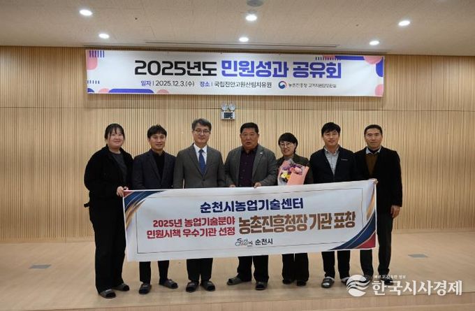 한국시사경제 전남취재본부 | 순천시는 지난 3일 국립진안고원산림치유원에서 열린 농촌진흥청 주관 ‘2025년 민원성과 공유회’에서 '2025년 농업기술 분야 민원시책 우수기관'에 선정되는 영예를 안았다고 밝혔다.