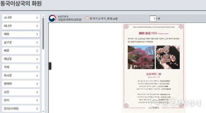 한국시사경제 사회팀 | 농촌진흥청은 우리나라 고전 속 꽃식물을 원예학적으로 분석하고, 국립원예특작과학원 누리집에 내용을 공개한다고 밝혔다.