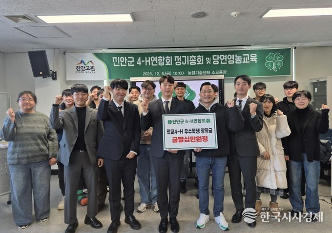 한국시사경제 김숙영 기자 | 진안군 4-H연합회는 5일 진안군 농업기술센터 3층 소교육장에서 열린 정기총회에서 학교4-H 우수회원 8명에게 장학금을 전달했다. 장학생은 지난 1년간 4-H 과제활동과 농촌문화탐방교육 등 다양한 활동을 성실히 수행하고, 학교생활 전반에서 우수한 평가를 받은 학생들로 선발됐다.