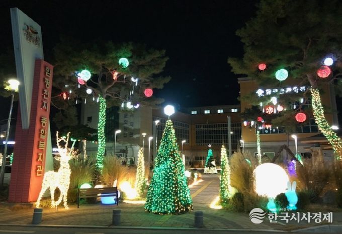 함평군은 5일 “노인복지관, 가족센터, 청소년센터 3개 기관이 함께 함평군천지종합복지관 앞 정원에 크리스마스트리, 달, 토끼 등 다양한 조형물과 야간경관을 설치했다”고 밝혔다.