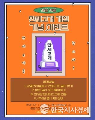 한국시사경제 경기취재본부 | 안성3.1운동기념관은 오는 12월 10일부터 12월 31일까지 만세고개 개칭을 기념한 시민 참여형 이벤트 “만세고개를 찾아라!”를 운영한다.