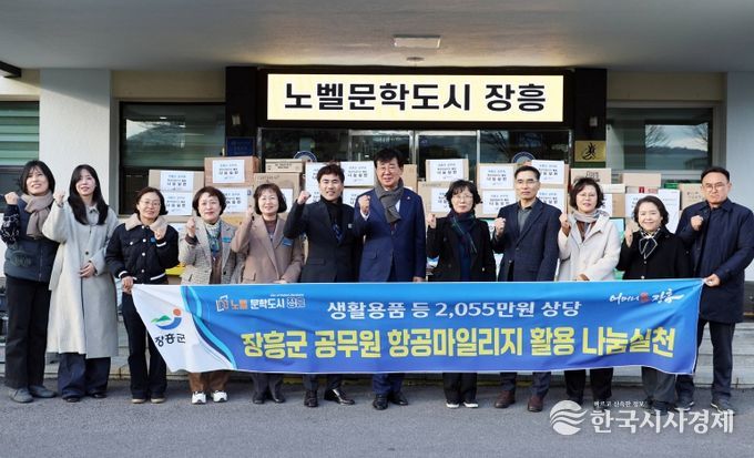 한국시사경제 전남취재본부 | 장흥군 공무원 122명이 공적 항공마일리지를 활용해 마련한 20,558,250원 상당의 생필품 197점을 지역 취약계층에 전달했다.