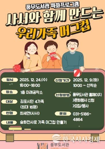 참여 신청은 12월 9일 오전 10시부터 풍무도서관 홈페이지에서 가능하며, 김포시민 가족 4가족(최대 16명)을 선착순 모집한다.