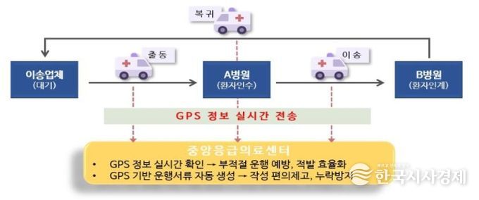 이에 보건복지부는 실시간 GPS 정보를 기반으로 구급차 운행을 관리할 계획이다. 구급차가 운행할 때 GPS 정보를 중앙응급의료센터에 실시간으로 전송하도록 의무화하고, 이를 상시 확인할 수 있는 시스템을 구축한다.