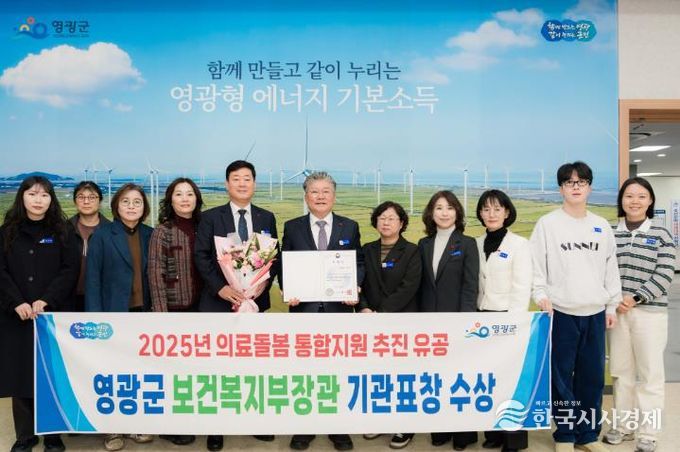 한국시사경제 의료보건팀 | 영광군은 12월 5일 보건복지부가 주관한 “2025년 의료·요양·돌봄 통합지원 성과대회”에서 유공 기관으로 선정되어 보건복지부 장관 표창을 수상했다.
