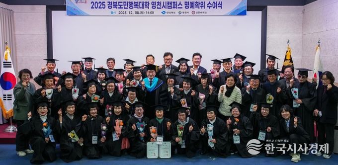 한국시사경제 경북취재본부 | 영천시는 8일 성운대학교 강당에서 수료생과 관계자 60여 명이 참석한 가운데 ‘2025년 경북도민행복대학 영천캠퍼스 제5기 명예학위 수여식’을 개최했다.