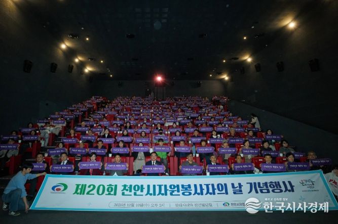 한국시사경제 충남취재본부 | 천안시자원봉사센터는 10일 롯데시네마 천안불당점에서 ‘제20회 천안시자원봉사자의 날 기념행사’를 열고, 지역사회를 위해 헌신한 자원봉사자들의 노고를 격려했다.