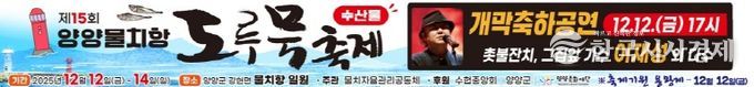 물치항 어촌계 관계자는 “도루묵 축제에서는 다양한 도루묵 요리와 함께 공연 및 체험 프로그램을 즐기며 추운 겨울도 따뜻하게 보낼 수 있을 것”이라며 “많은 분들이 방문하셔서 신선한 도루묵의 맛과 함께 양양 겨울 바다만의 정취를 느껴보시길 바란다”고 전했다.